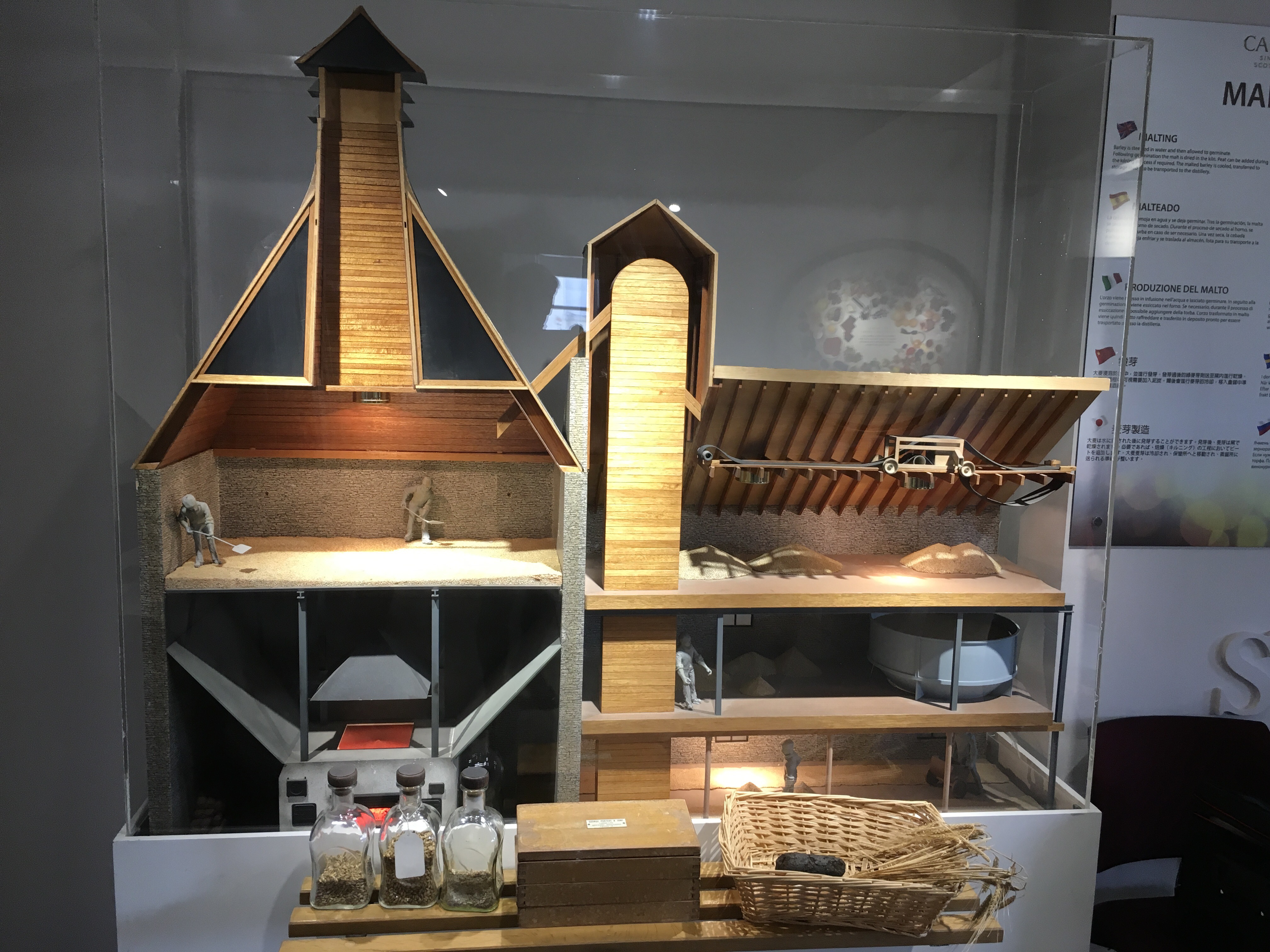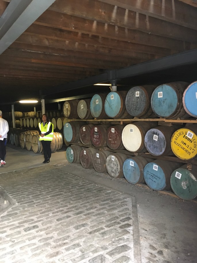 Dinsdag 30 mei. Vandaag is speciaal omdat we een bezoek brengen aan de laatste destilleerderij van onze tocht. Maar laten we bij het begin van de dag beginnen. We moesten ten slotte het hotel/b&b verlaten en dat betekende iets eerder opstaan om de tassen weer te vullen en zodanig in te pakken dat de gewichten goed verdeeld kunnen worden op de fiets. Voor het ontbijt hadden we het gebruikelijke volledig schots ontbijt. Bij de afrekening gaf de eigenaar ons £ 30,– voor het fonds mee en vond het fantastisch wat we gedaan hadden en doen. Na een hartelijke afscheid moesten we Edinburgh zie uit te komen en dat valt niet altijd mee in een stad dat niet de jouwe is. Maar het ons uiteindelijk gelukt. Trouwens de weg naar de destilleerderij ging ook niet over rozen maar over een oud spoor. Ook kwamen nog langs een gigantische opslagplaats voor barley en andere graansoorten die gebruikt worden in de whisky industrie. Met een half uur vertraging, door verkeerd rijden en een versleten fiets, kwamen we aan bij de Glenkinchie Distillery. Ook deze behoort toe aan het conglomeraat DIAGIO, en valt onder de “classic malts selection”. De destilleederij begint met bowling baan. Achteraan heb je het bezoekers centrum. Bij binnenkomst was het absoluut niet druk. Een vriendelijke vrouw lachte naar ons en vroeg waarmee ze ons kon helpen. Ik gaf haar de pasjes “the friends of the classic malts” waardoor we een gratis rondleiding konden krijgen. Tevens gaf haar de bekende brief waarin ik uitleg wat we proberen te doen. Ze was erg onder de indruk en gaf me bij het weg gaan een persoonlijke donatie. Bij Glenkinchie hebben ze hele mooie maquette gemaakt van de gehele productie lijn voor het maken van whisky. Erg mooi om te zien. Daarna kregen we de tour en nosing and tasting. Ook hier mochten er geen foto’s gemaakt worden van de productie onderdelen. Ook hier zijn ze op details weer anders dan andere destilleerderijen. Een voorbeeld is dat bij Glenkinchie washstill maar tot een 20% alcohol destilleerd wordt. Al met al was het een geslaagde rondleiding. Tevens moesten wij nog op de foto voor facebook. Bij ons vertrek regende het een beetje en daar hebben we regenkleding voor en wij weer op pad, nu richting Berwick- upon-Tweed. Die hebben we echter nooit gehaald maar zijn gestrand in Duns. Hoe dat vertel ik je morgen wel. Voor nu tot morgen.